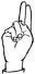 На ћирилици написано МИРОСЛАВ ГАЋЕ састоји се из 12 слова [?]. Исписано ћириличном једноручном азбуком за глувонеме: